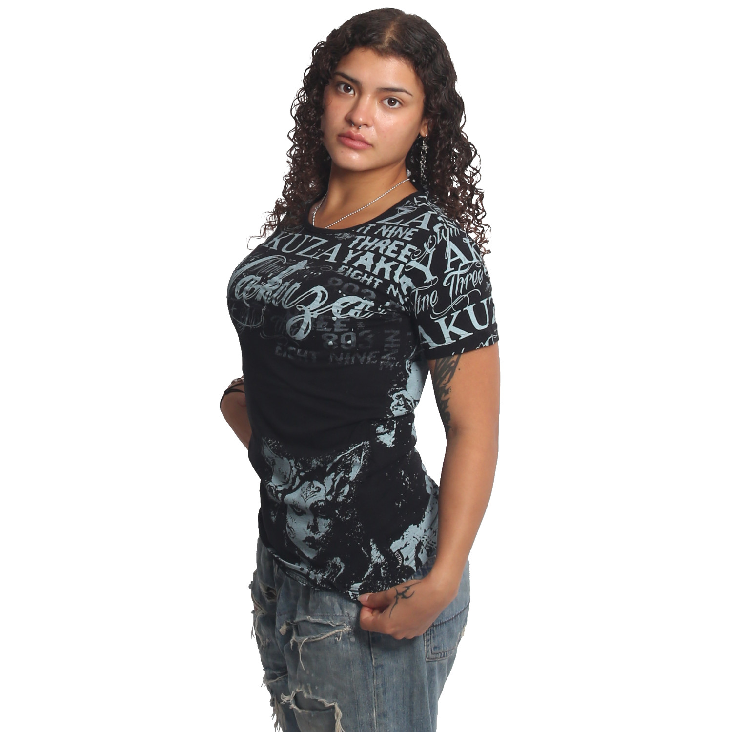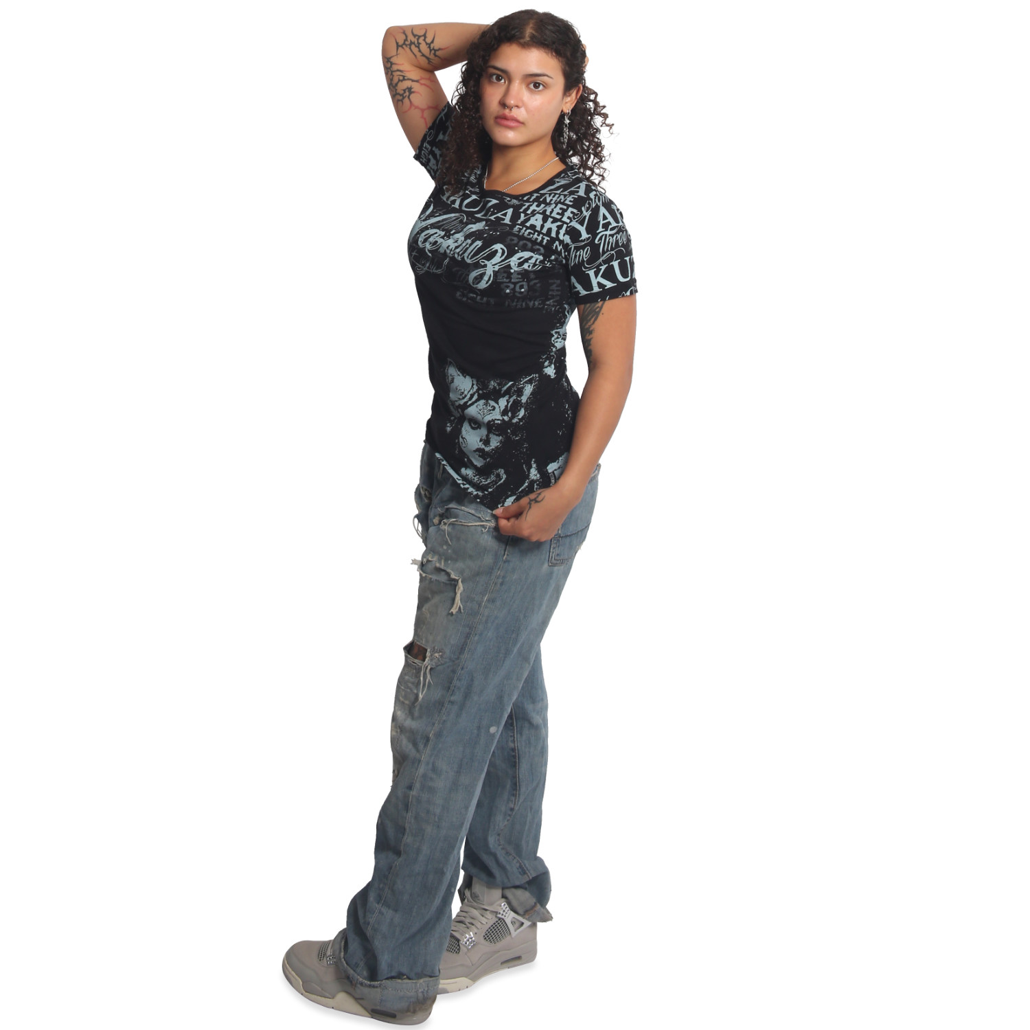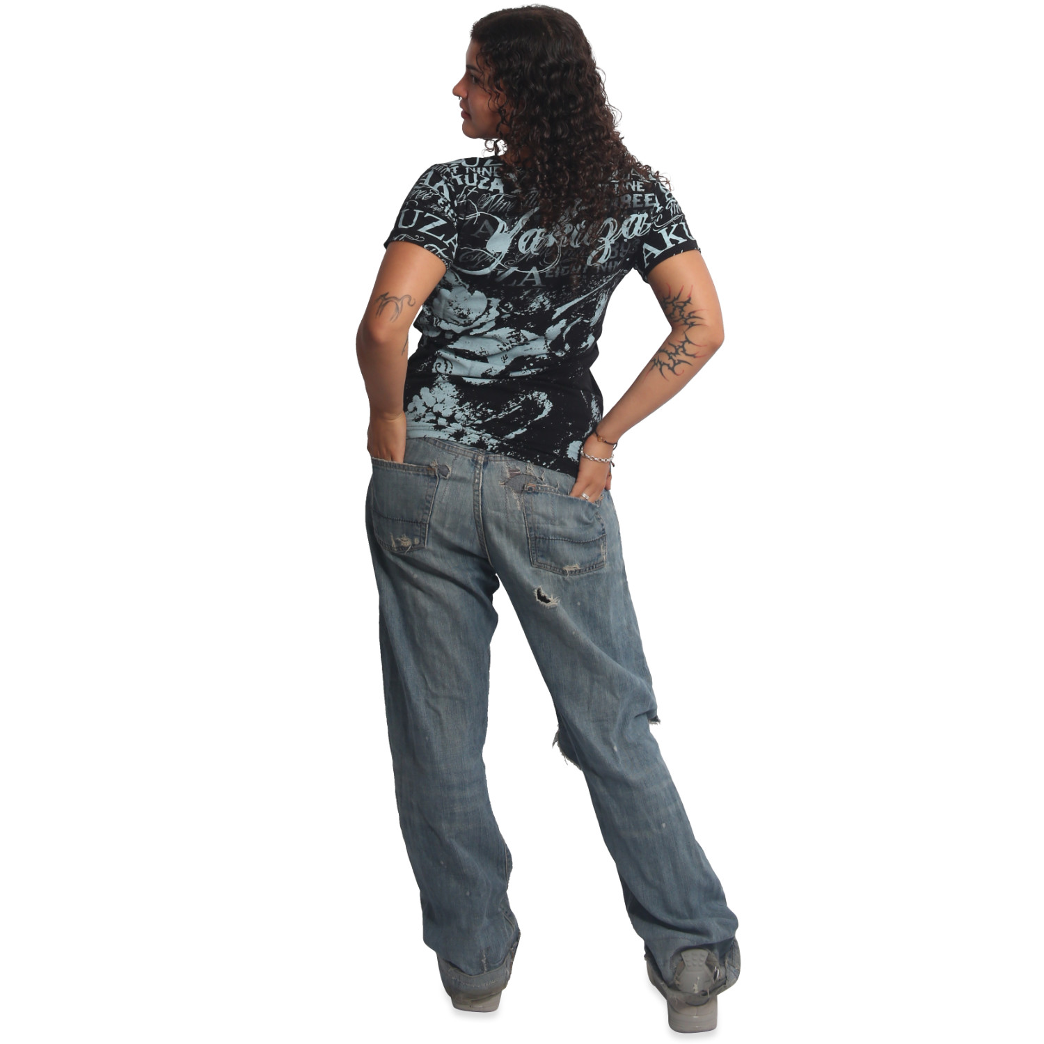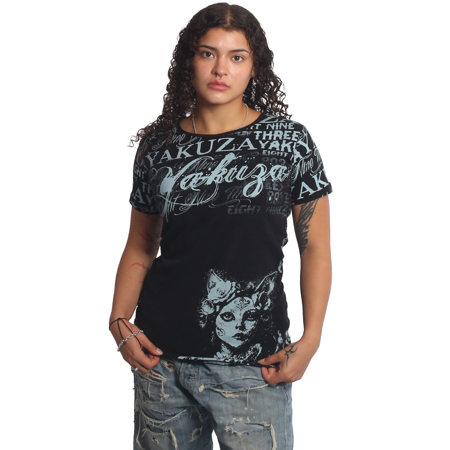 YAKUZA CATZ T-Shirt für Damen. Bequemes Kurzarm-T-Shirt mit lässiger Passform: Nicht zu eng, nicht zu weit, genau richtig. Es präsentiert sich mit gerippten Rundhalsausschnitt sowie Grafikprints. Ein Yakuza-Logoetikett an der Seitennaht rundet das Design ab. Bitte beachte die Größenangaben und unsere Waschanleitung.