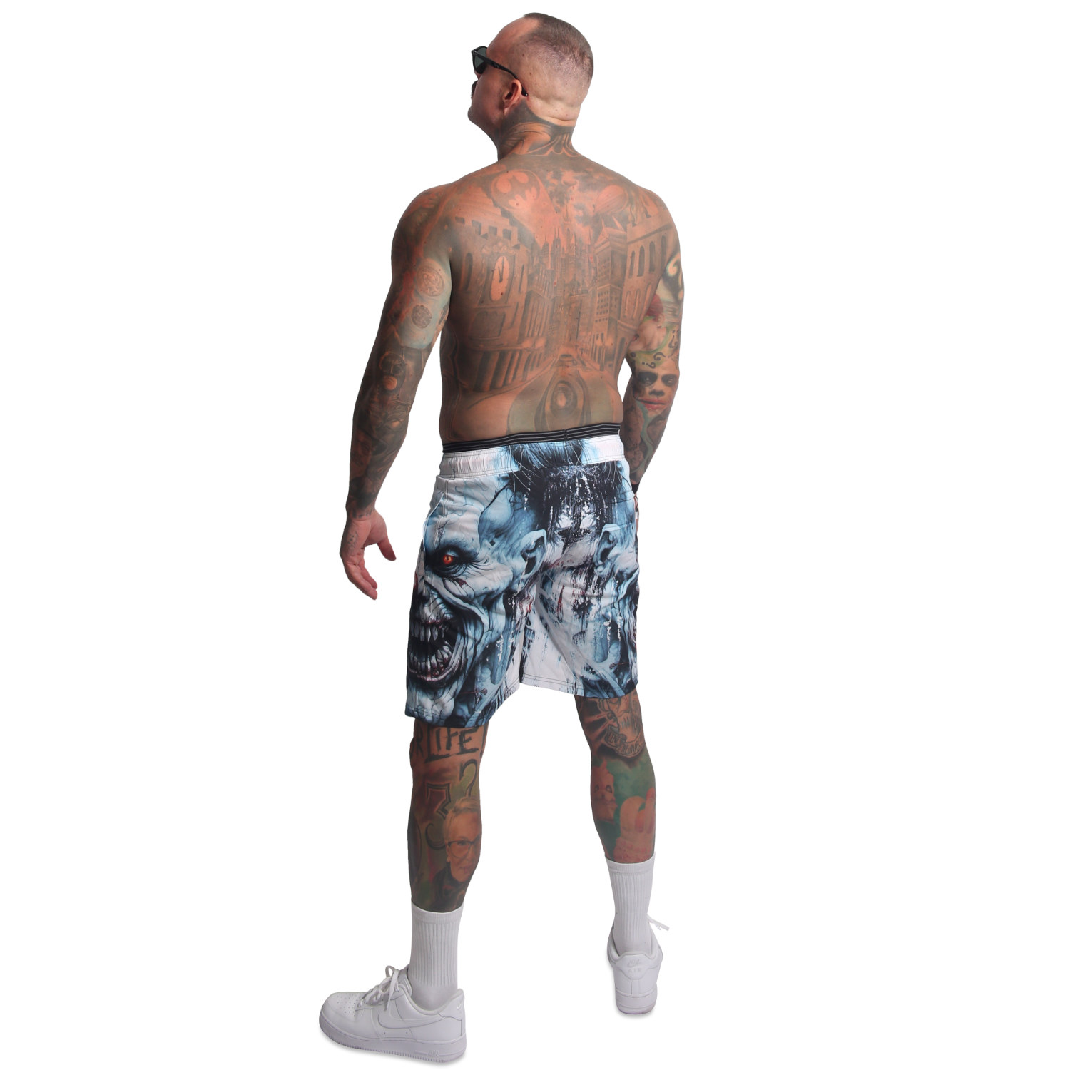 YAKUZA INSANITY Badeshorts für Herren. Egal ob Chillen am Strand oder beim Schwimmen, diese klassisch geschnittene Badehose überzeugt mit ihrer lässigen Passform: Nicht zu eng, nicht zu weit, genau richtig. Sie verfügt über einen doppellagigen Elastikbund und Kordelzug sowie zwei Fronttaschen und eine verschließbare Gesäßtasche. Superelastisches, schnelltrocknendes Material und stabiles Meshfutter sowie Alloverprint und ein gummiertes Yakuza-Logoetikett auf der Rückseite runden das Design ab. Bitte beachte die unten stehenden Größenangaben und unsere Waschanleitung.