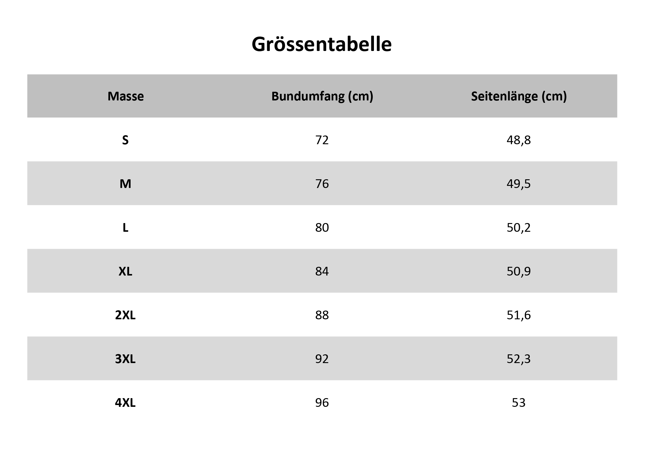 Grössentabelle