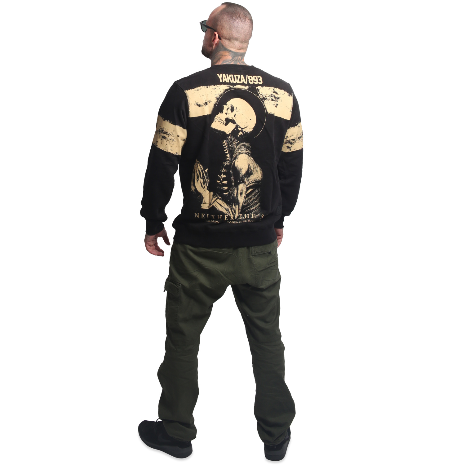 YAKUZA PRAY Sweater für Herren. Coolness und Komfort erhältst du mit unseren lässig geschnittenen Sweatshirts mit Rundhalsausschnitt. Gerippte Abschlüsse an Bündchen, Kragen und Saum, provokante Grafikprints und ein Yakuza-Logoetikett an der Seitennaht sowie ein Logoaufnäher auf der Rückseite runden das Model ab. Bitte beachte die Größenangaben und unsere Waschanleitung.