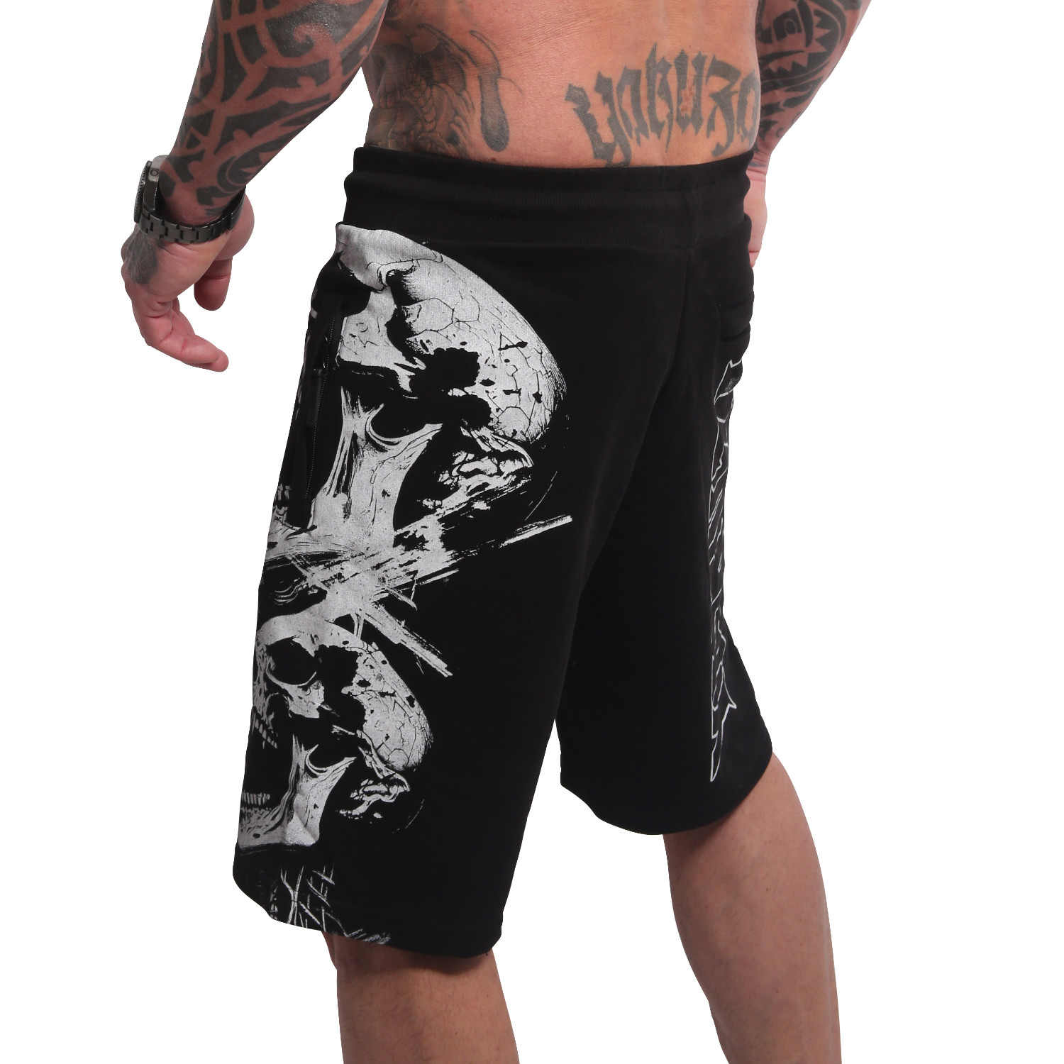 YAKUZA REVENANT Sweat Shorts für Herren. Diese Shorts im Jogginghosen-Stil sind ein unverzichtbarer Bestandteil deiner Freizeitgarderobe, die sowohl im Fitnessstudio als auch auf der Straße eine gute Figur machen: Nicht zu eng, nicht zu weit – genau richtig. Sie verfügen über einen Kordelzug im Bund, zwei verschließbare Fronttaschen und eine Gesäßtasche. Grafikprints sowie ein Yakuza-Logoetikett an der Gesäßtasche runden das Design ab. Bitte beachte die unten stehenden Größenangaben und unsere Waschanleitung.