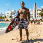 YAKUZA WELCOME Badeshorts für Herren. Egal ob Chillen am Strand oder beim Schwimmen, diese klassisch geschnittene Badehose überzeugt mit ihrer lässigen Passform: Nicht zu eng, nicht zu weit, genau richtig. Sie verfügt über einen doppellagigen Elastikbund und Kordelzug sowie zwei Fronttaschen und eine verschließbare Gesäßtasche. Superelastisches, schnelltrocknendes Material und stabiles Meshfutter sowie Alloverprint und ein gummiertes Yakuza-Logoetikett auf der Rückseite runden das Design ab. Bitte beachte die unten stehenden Größenangaben und unsere Waschanleitung.